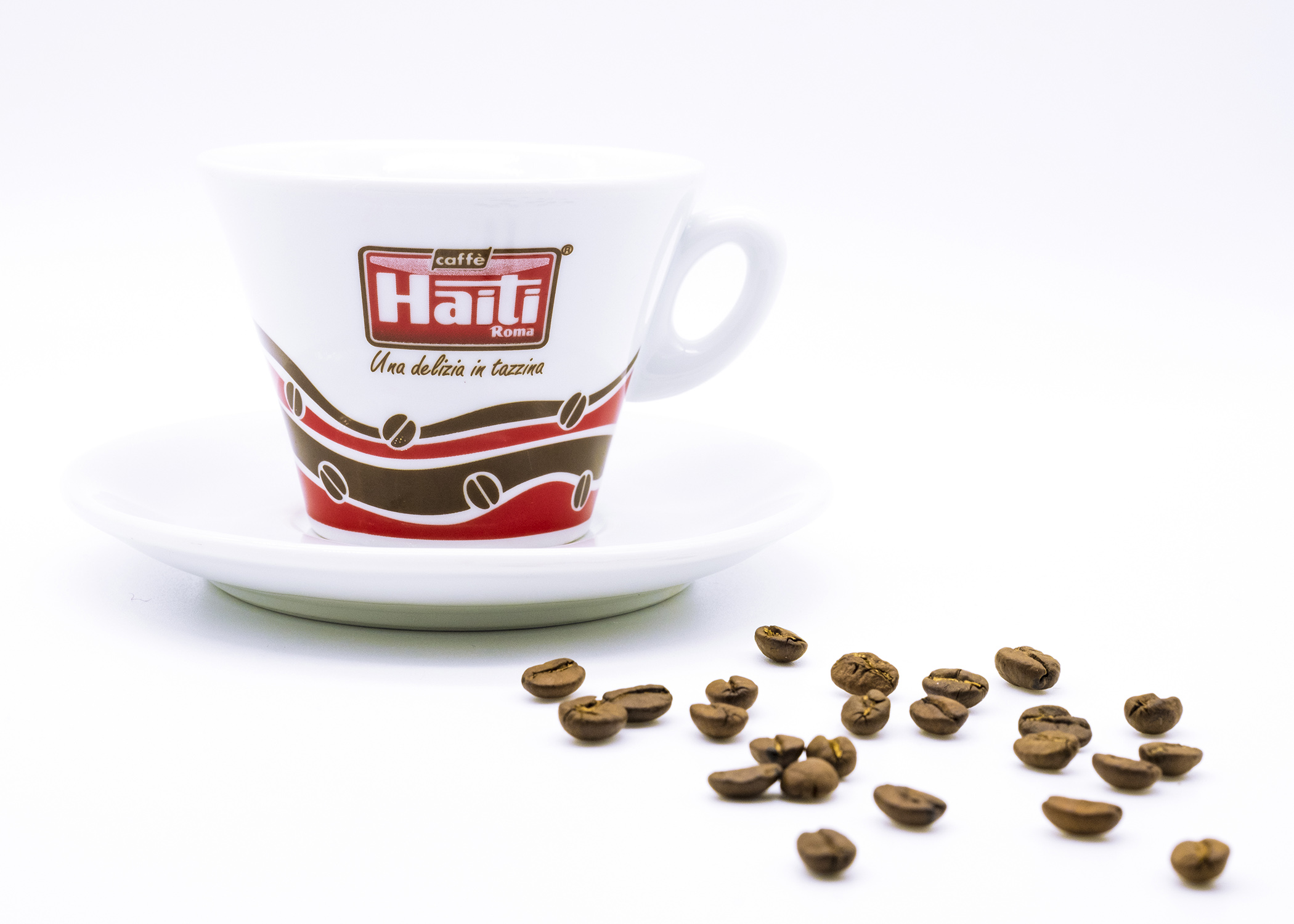 Haiti Cappuccino Cup is made of white ceramic with logo printed in two colors and with an original design.